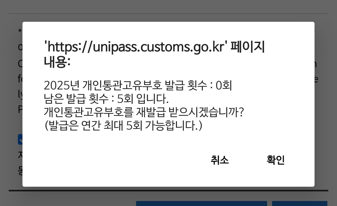 - 관세청에 따르면 개인통관번호는 신규 발급일로부터 1년간 유효합니다 (2026년부터 적용)