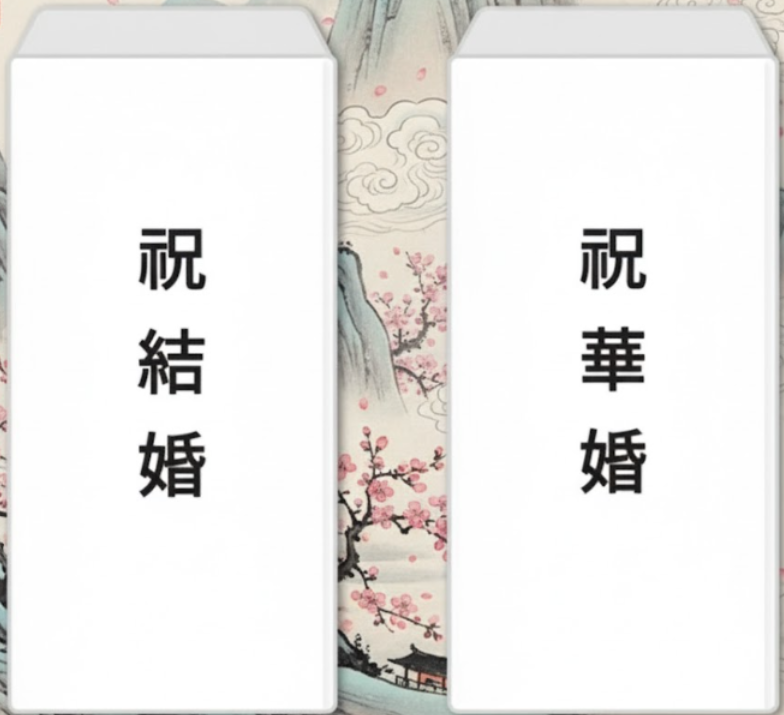 일반적으로 일생의 큰 이벤트가 있는 날에는 흰색 경조사 봉투를 사용하며, 앞면에는 축하의 의미를 담은 문구를 적는 것이 기본입니다. 가장 많이 사용되는 표현은 '축결혼' 또는 ‘축의’입니다. '축화혼'이라는 말을 쓰기도합니다.