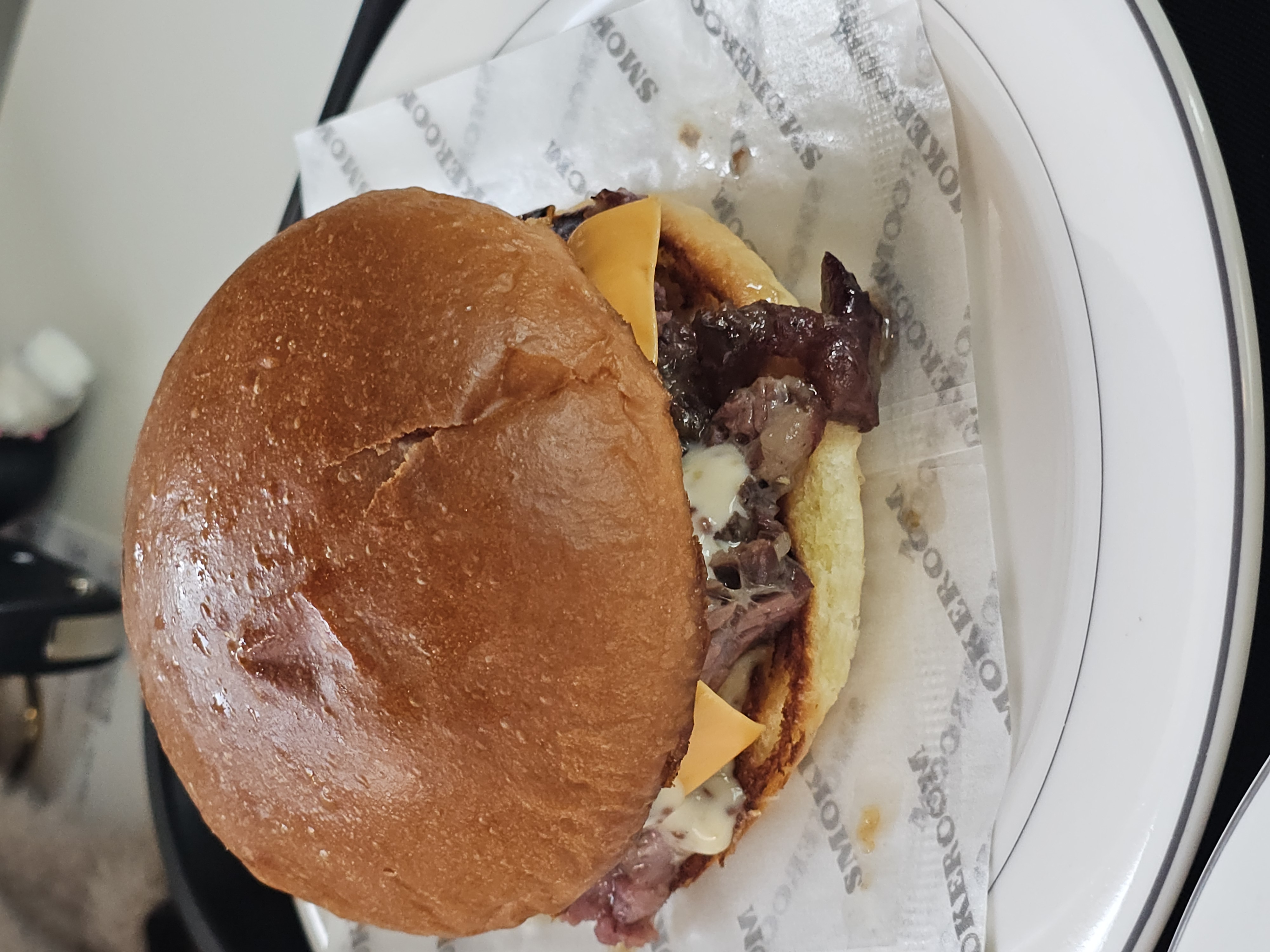 스모크룸은 자체 훈연 설비로 브리스킷(소고기 가슴살)을 12시간 이상 훈연해 음식의 풍미를 극대화한다고 합니다. 그래서 일반 패티와는 차별점이 있는 건데요. 직접 주문해서 먹어보니 확실히 다르긴 하더라고요. 맛있었습니다.