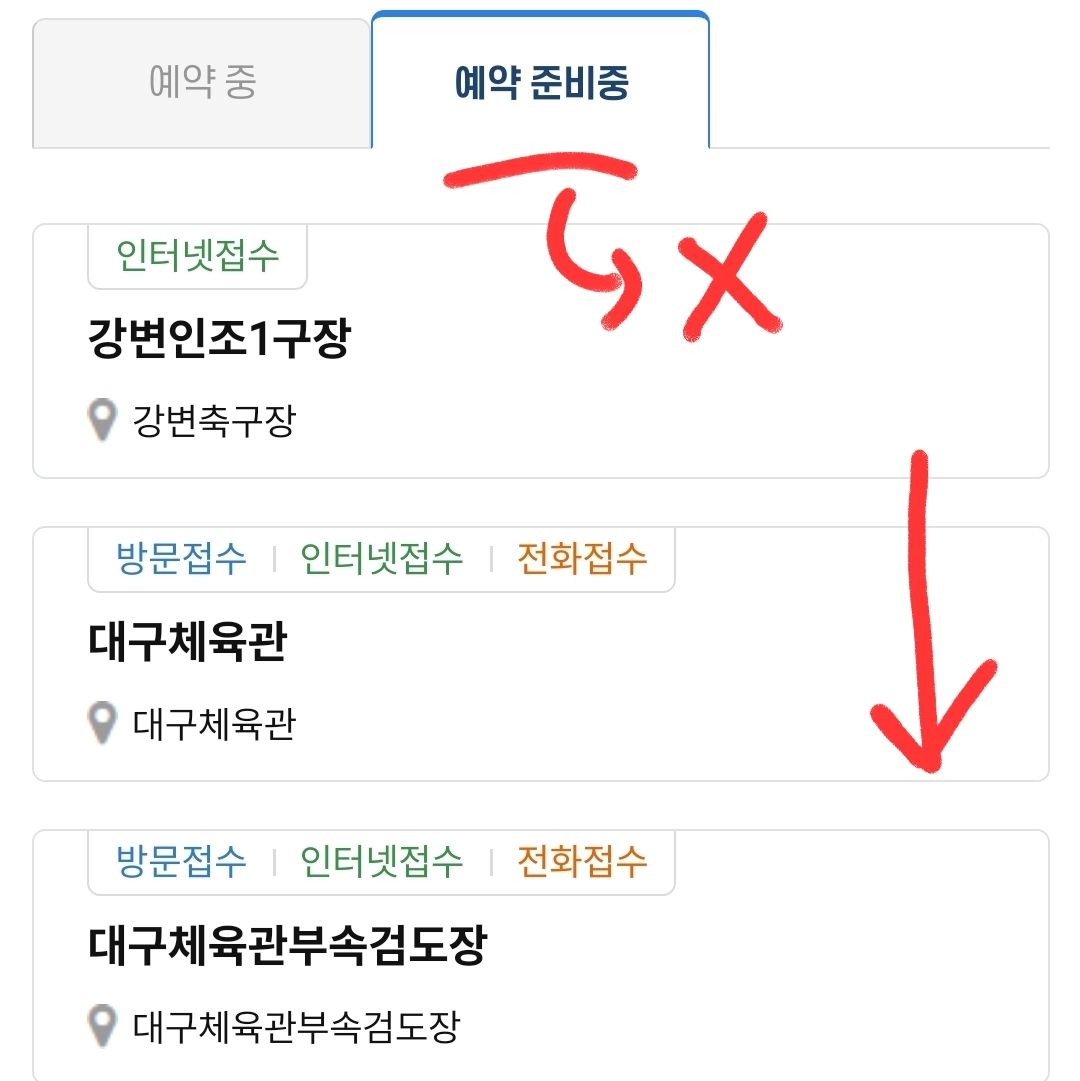 예약 준비 중: 현재 기준 예약이 불가능한 대구 체육시설들. 모종의 이유로 현재에는 예약이 불가능한 시설들입니다.