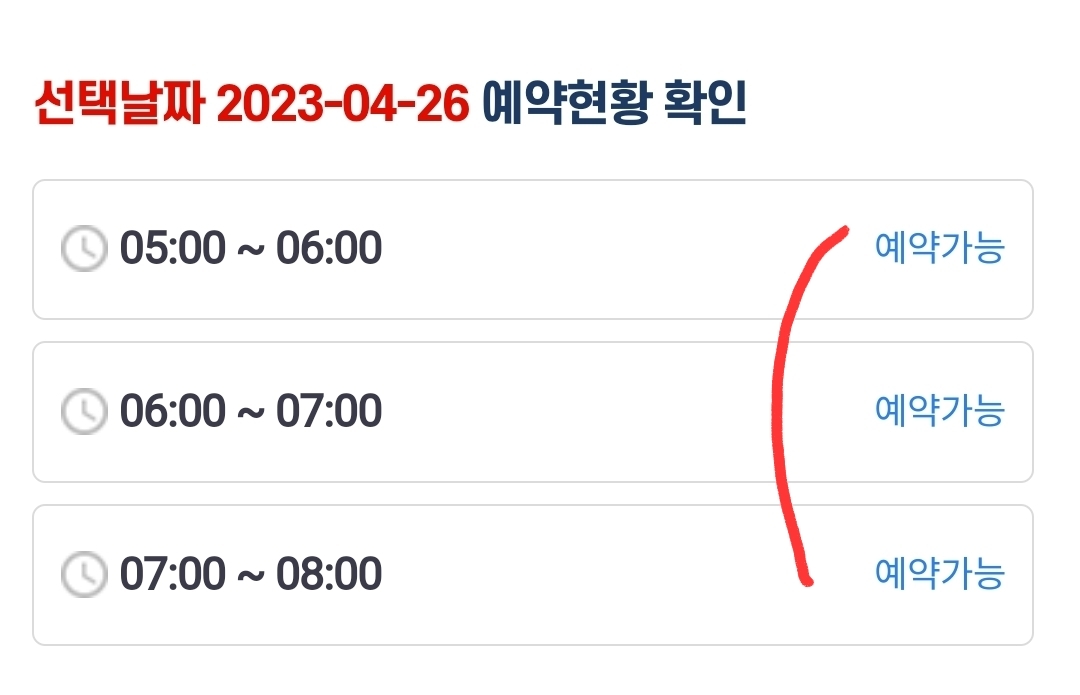 스크롤을 아래로 내리면 예약 상황을 볼 수 있습니다.