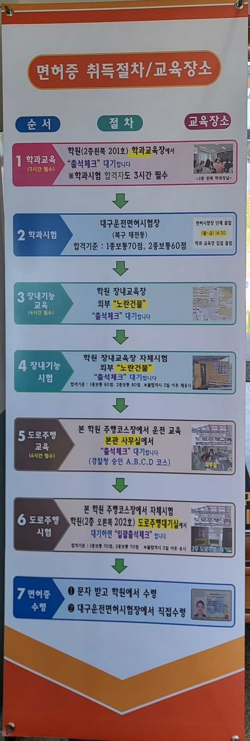 7. 면허증 수령: 학원 또는 대구 운전면허시험장 직접 수령