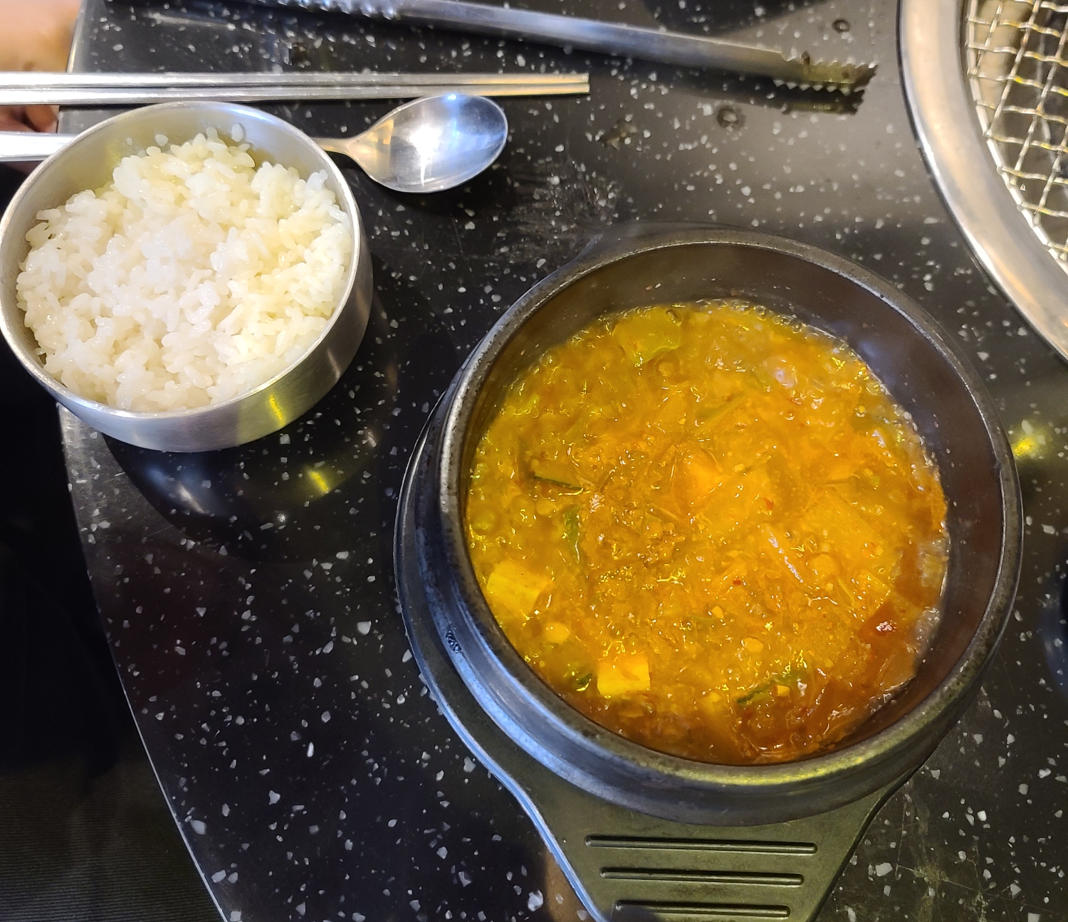 한국인은 역시 밥이죠! 된장찌개와 밥 하나를 주문해서 맛있게 마무리했습니다. 된장찌개에 밥이 함께 나오는 게 아니라 따로 추가를 하셔야합니다. 기억에 1000원 2000원 정도 했어서 크게 부담있는 금액은 아닙니다.