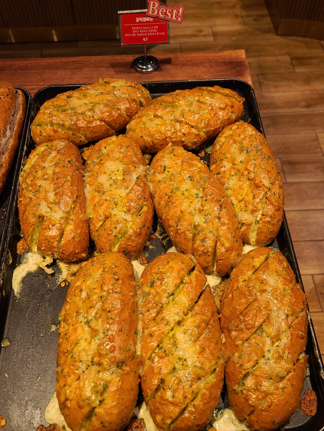 소세지가 돌돌말려있는 빵과 옆에는 크림을 납작하게 만들어놓은 빵이예요. 둘 다 먹어봤었는데 맛있습니다.