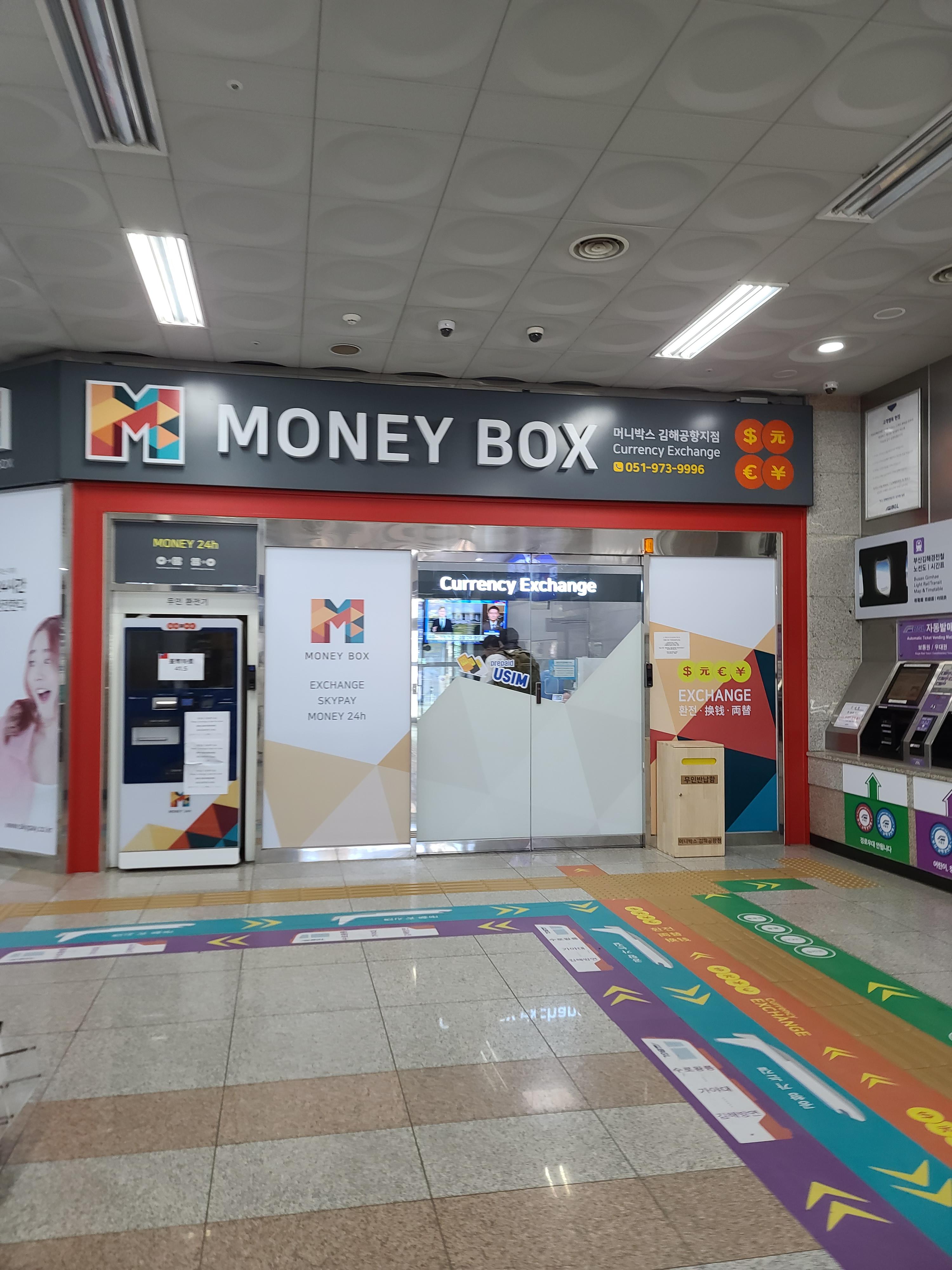 24시간 환전이 가능하다고 쓰여있습니다. 요즘은 세상이 좋아져서 기계를 통해 환전이 가능한 시대지요. 머니박스 김해공항지점이 영업하지 않고 있다면 기계를 이용하시면 됩니다.
