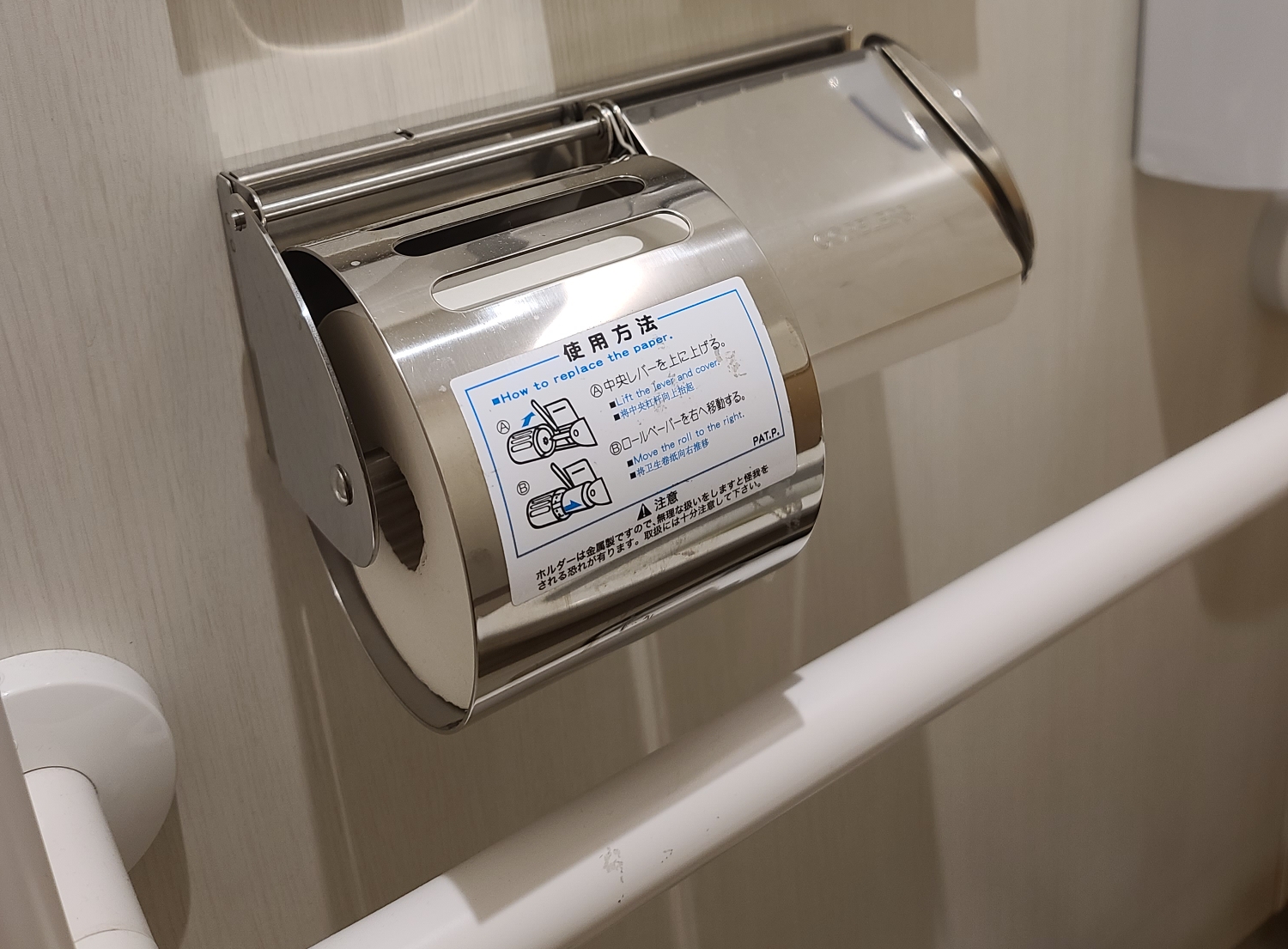 혹시 모를 낙상을 위한 안전바도 있습니다. 휴지는 무조건 두 개가 나란히 걸려있더라고요. 일본 화장실의 특징인 것 같습니다.