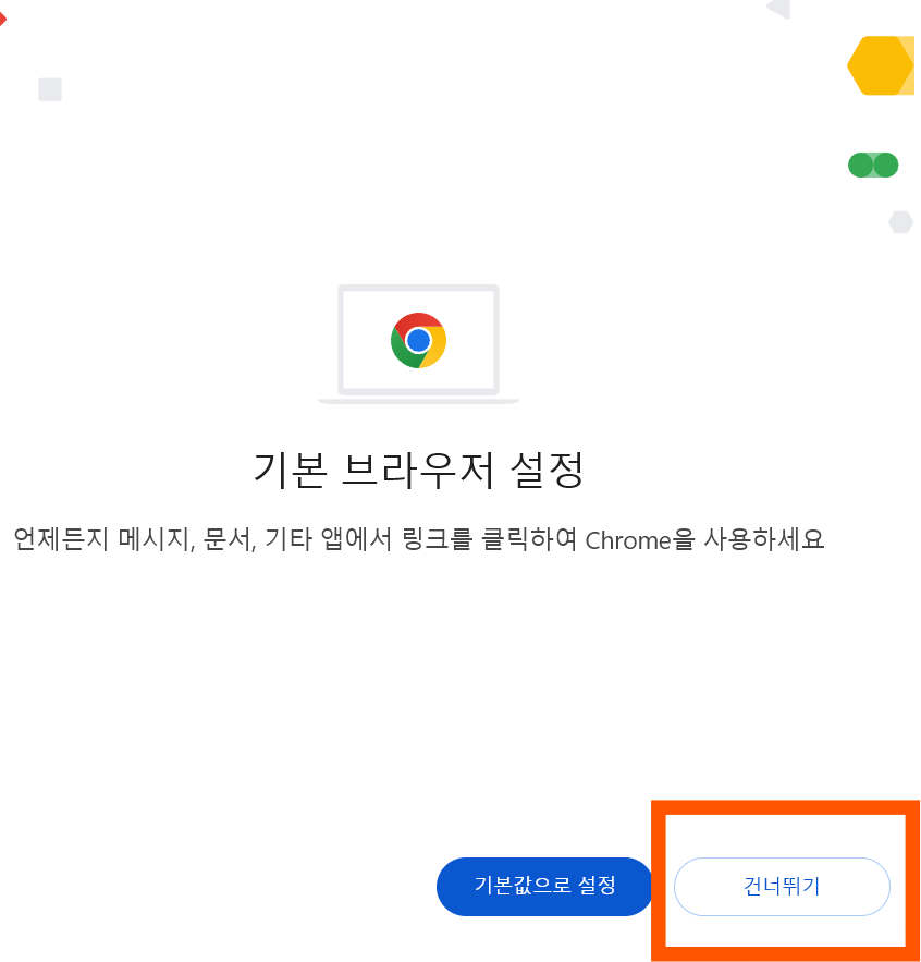 크롬 설치가 끝났다면, 첫 설정도 중요합니다.