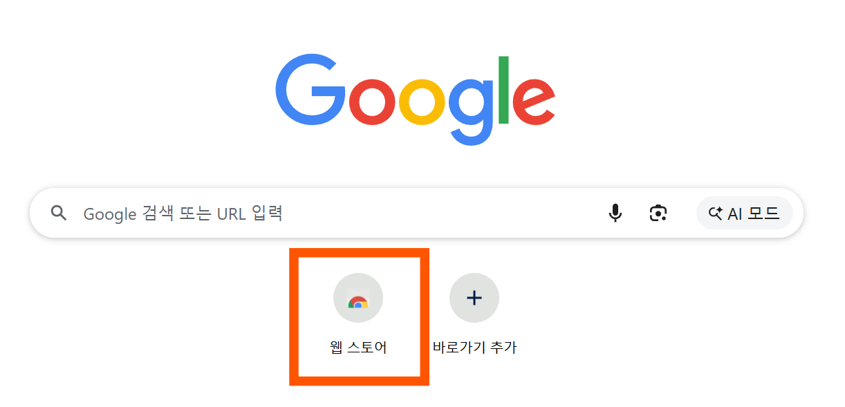 주소창에 크롬 웹스토어를 입력하면 바로 접속할 수 있지만, 크롬 인터넷을 키고 검색창 아래에 위치한 스토어 바로가기 버튼을 이용할 수도 있습니다. 개인적으로는 이게 더 편리하더라구요.