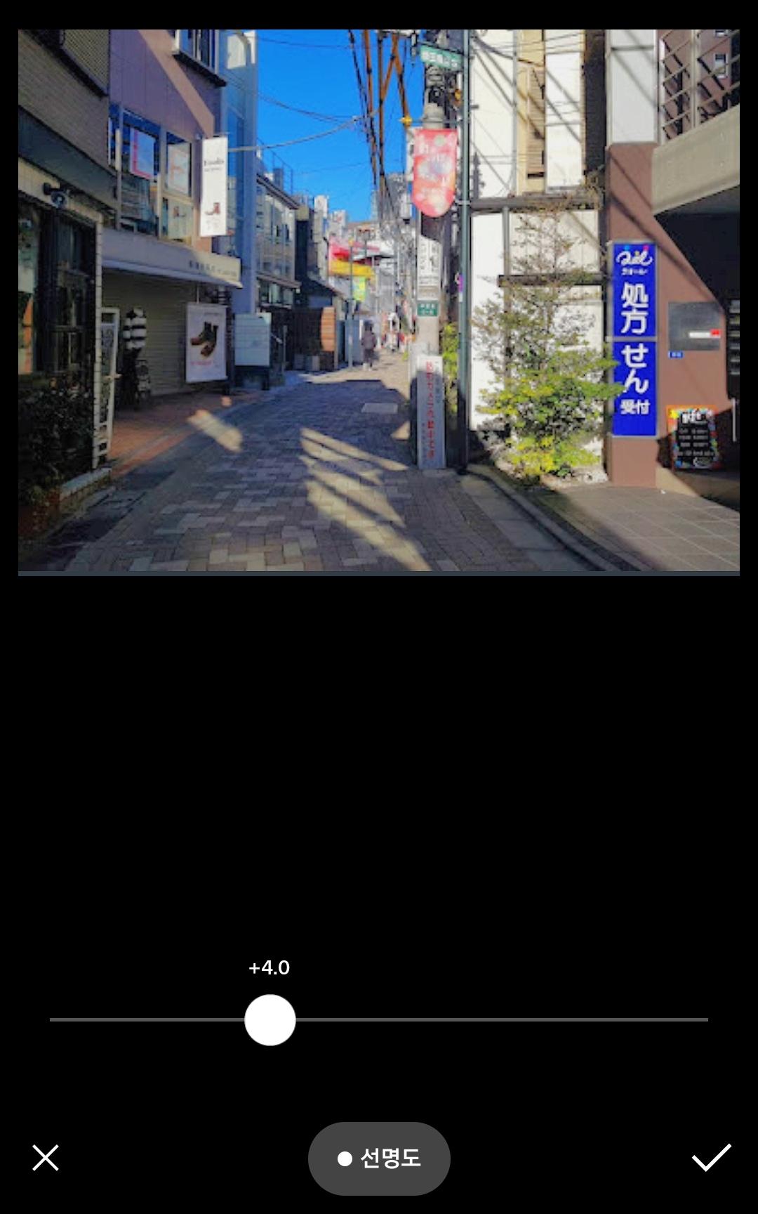 스노우 어플에서는 VSCO앱에 없었던 기능을 추가해주면 되는데요. 밝기를 아주 살짝 올려줍니다.