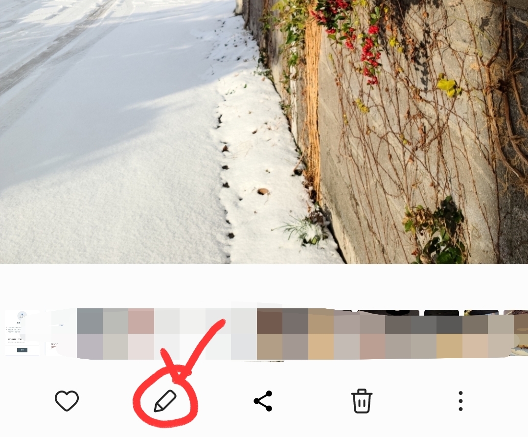 갤럭시 포토에디터를 실행시켜주세요. 갤러리에 들어간 뒤 아랫쪽의 연필 모양을 눌러주세요.