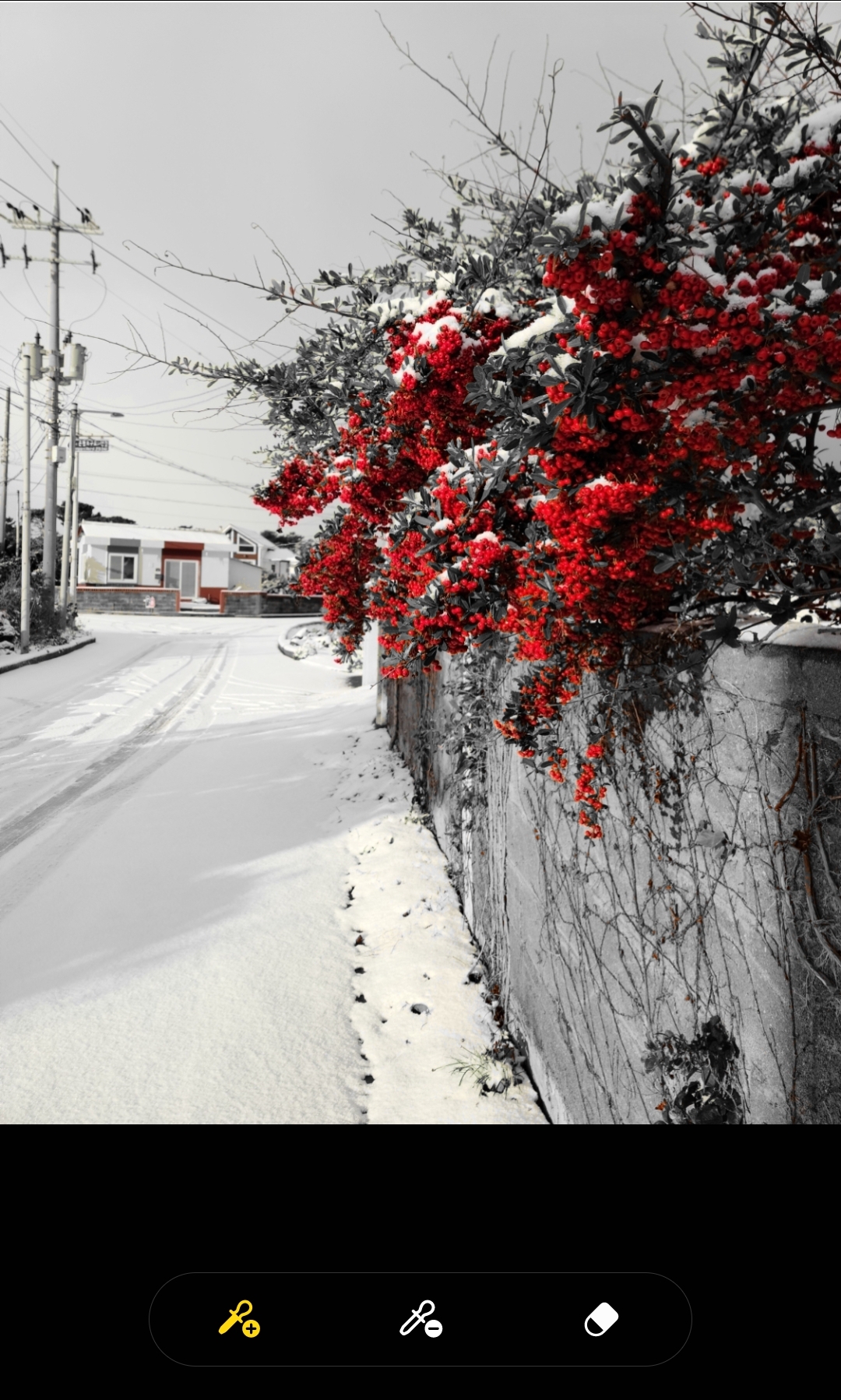 지우개 기능은 이럴 때 좋습니다. 붉은 부분을 살리고 싶지만, 내가 원하는 곳의 색감만 살아나기를 원할 때 포토에디터 지우개기능을 사용할 수 있습니다.