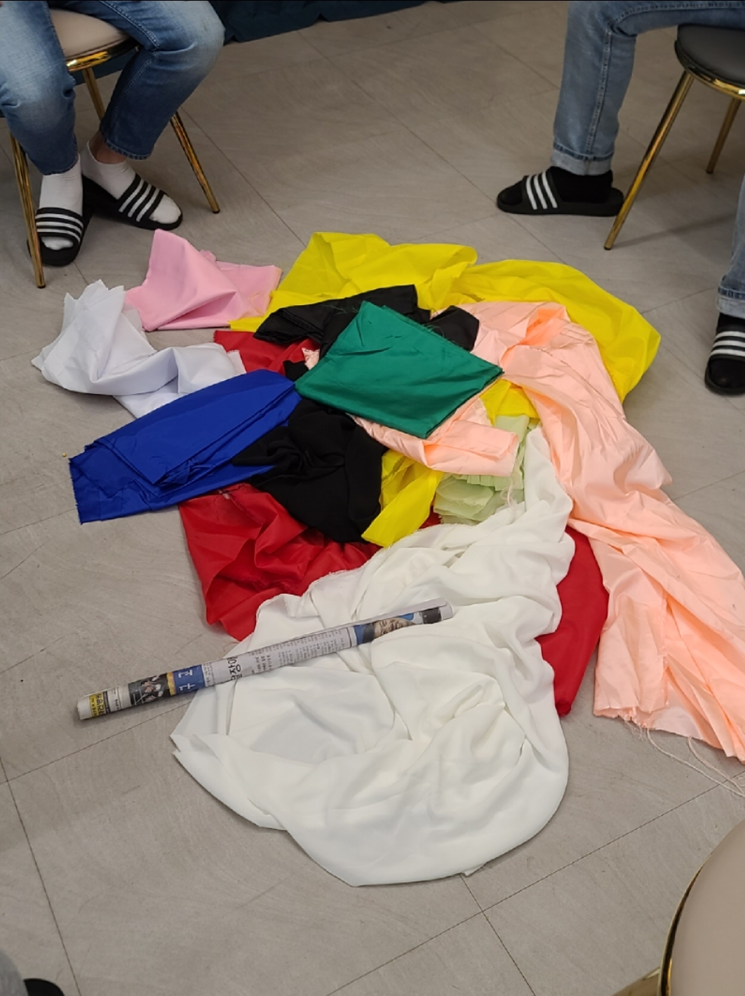 친구들과 연극하려고 모아뒀던 천들입니다. 이 사진을 가져오긴 했는데 막상 쓰려고 하니 뭐라고 써야할 지 막막하네요 ㅋㅋㅋ 알록달록한 천의 색감이 포토에디터 부분흑백 기능을 적용했을 때 효과적일 것 같아 가져와보았어요