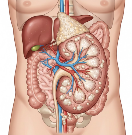 콩팥의 자리에 대신 만들어진 다낭성 이형성 신장은 정상적인 신장이 아니기 때문에, 소변 배출 기능을 하기 어렵습니다. 신장의 자리에 눌러앉은 덩어리일 뿐인 것이죠.