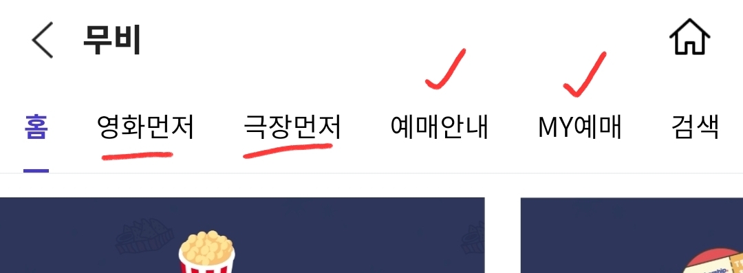 영화를 먼저 고를 수도 있고 극장을 먼저 고를 수도 있어요.